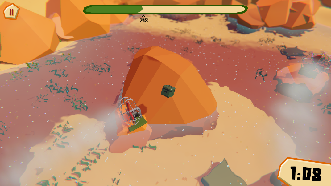 Use explosions to push your box and parkour through the rough terrain full of enemy traps and turrets. Make it to the base in record time and win the war!